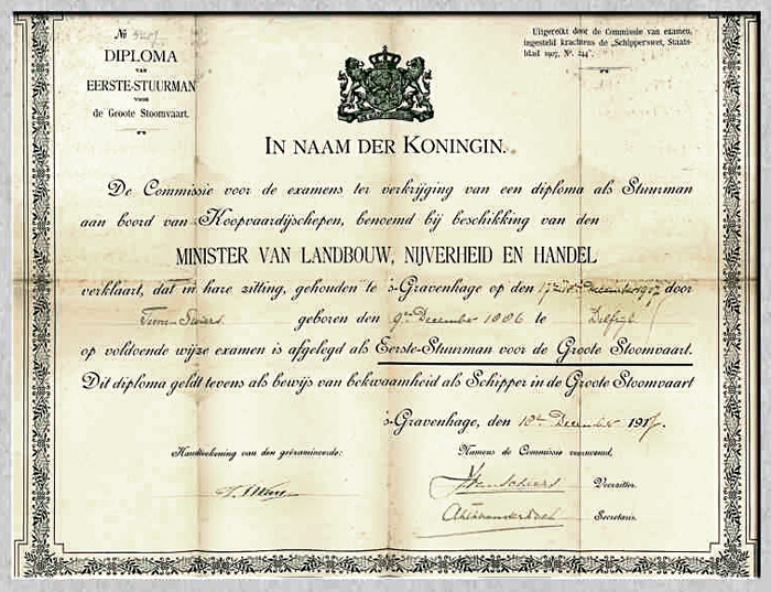 stuurman. Hij was in die periode o.a. in dienst van de Rotterdamsche Lloyd.