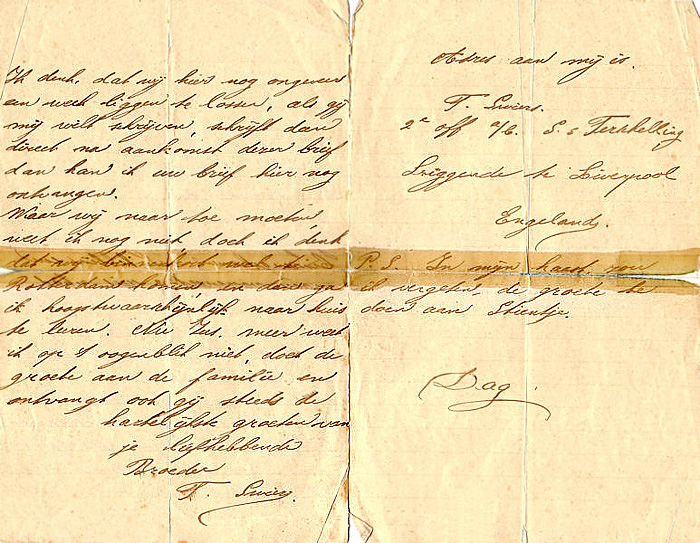 brief van Timen, o.a. over de ramp met de Titanic: