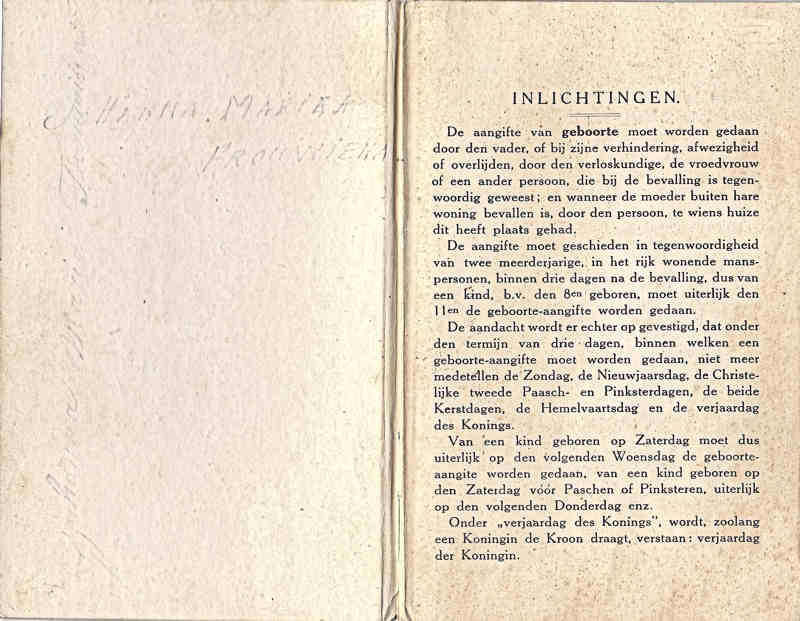 geheugensteuntje toen vader mij bij de Burgerlijke Stand ging aangeven,